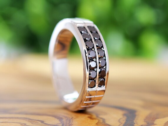 Unique Mens Wedding Band With Black Diamonds Mens Wedding Etsy